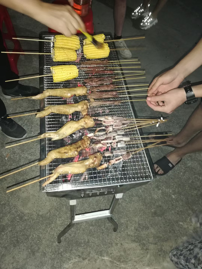 傍晚,我們回到民宿地,分享燒烤,啊,那香啊,鉆入鼻子,讓人神清氣爽,蕩氣回腸;那香啊,調(diào)皮地觸摸了一張張笑臉,讓人感受到生活的特殊香味。