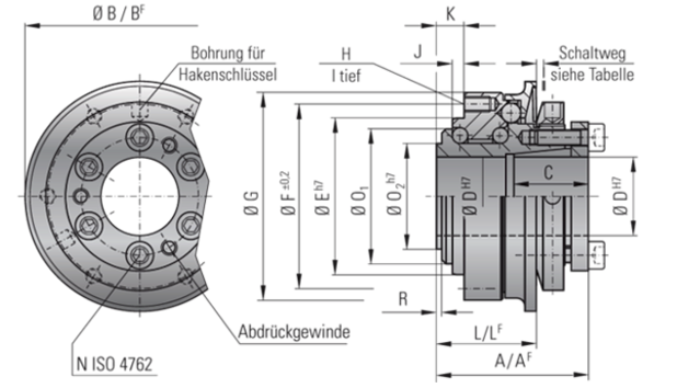 型號SK1從15 - 2.800 Nm,帶開槽錐形夾緊輪轂。可選擇夾緊輪轂連接。